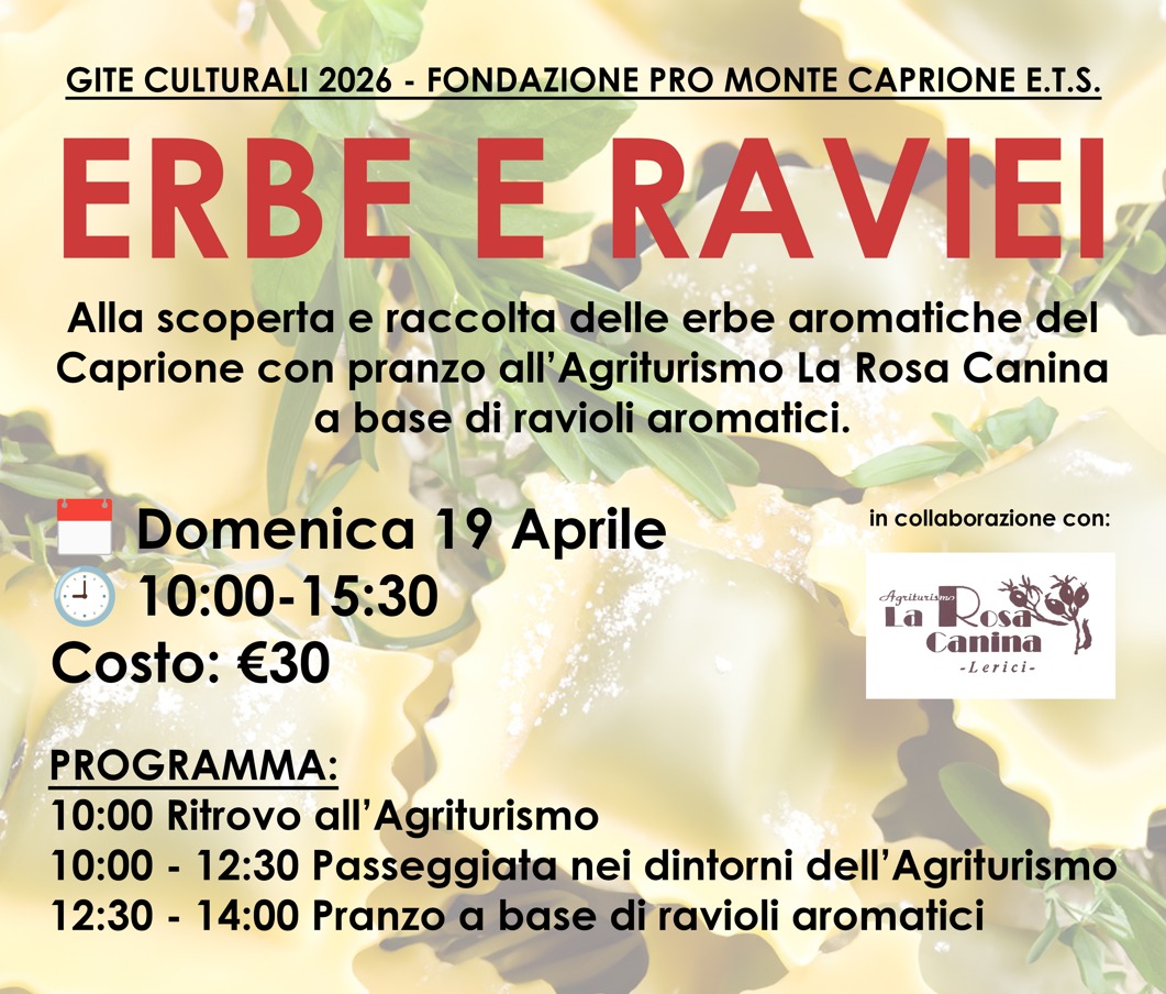 Alla scoperta e raccolta delle erbe aromatiche del Caprione con pranzo all’Agriturismo La Rosa Canina a base di ravioli aromatici.